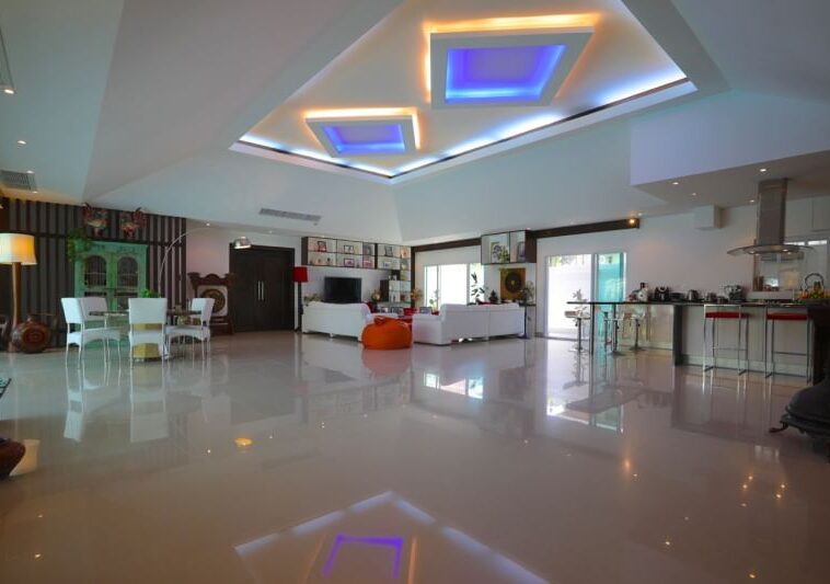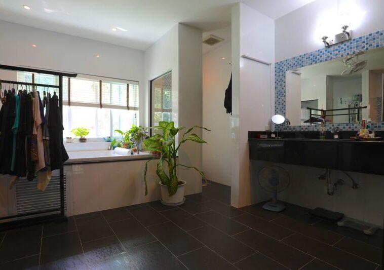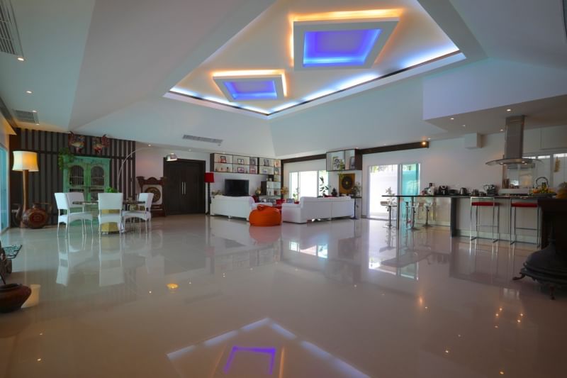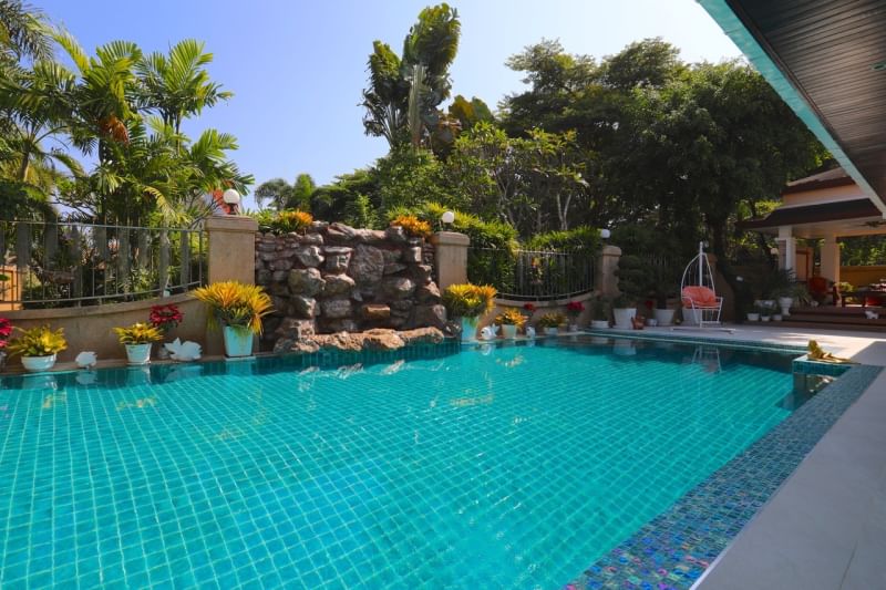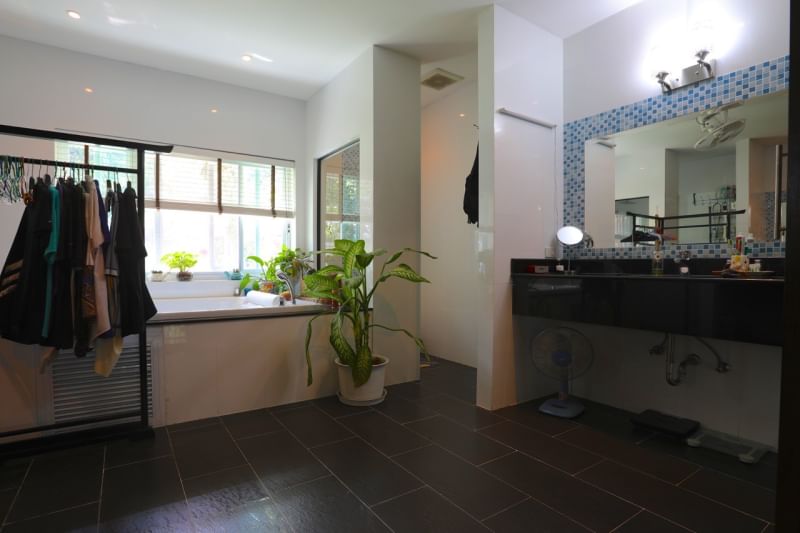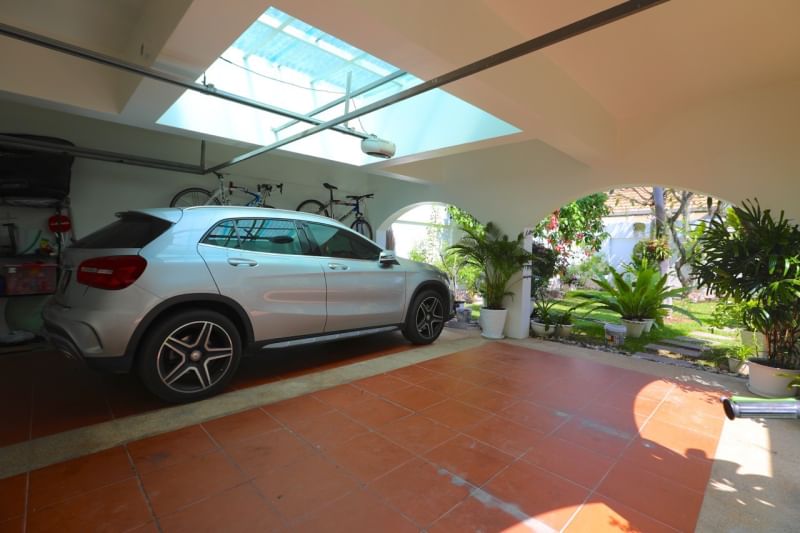 This spacious luxurious villa offers a stunning open plan living room – kitchen – dining area, 3 bedrooms / 4 bathrooms, a maids room, a basement room, a double carport and a large private pool, all surrounded by a nice tropical garden.