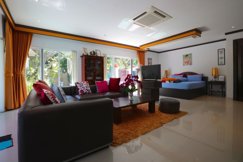 Best Location in Jomtien : very quiet in a secured Five Star Estate, walking distance to the beach, shopping, market, many restaurants and entertainment.