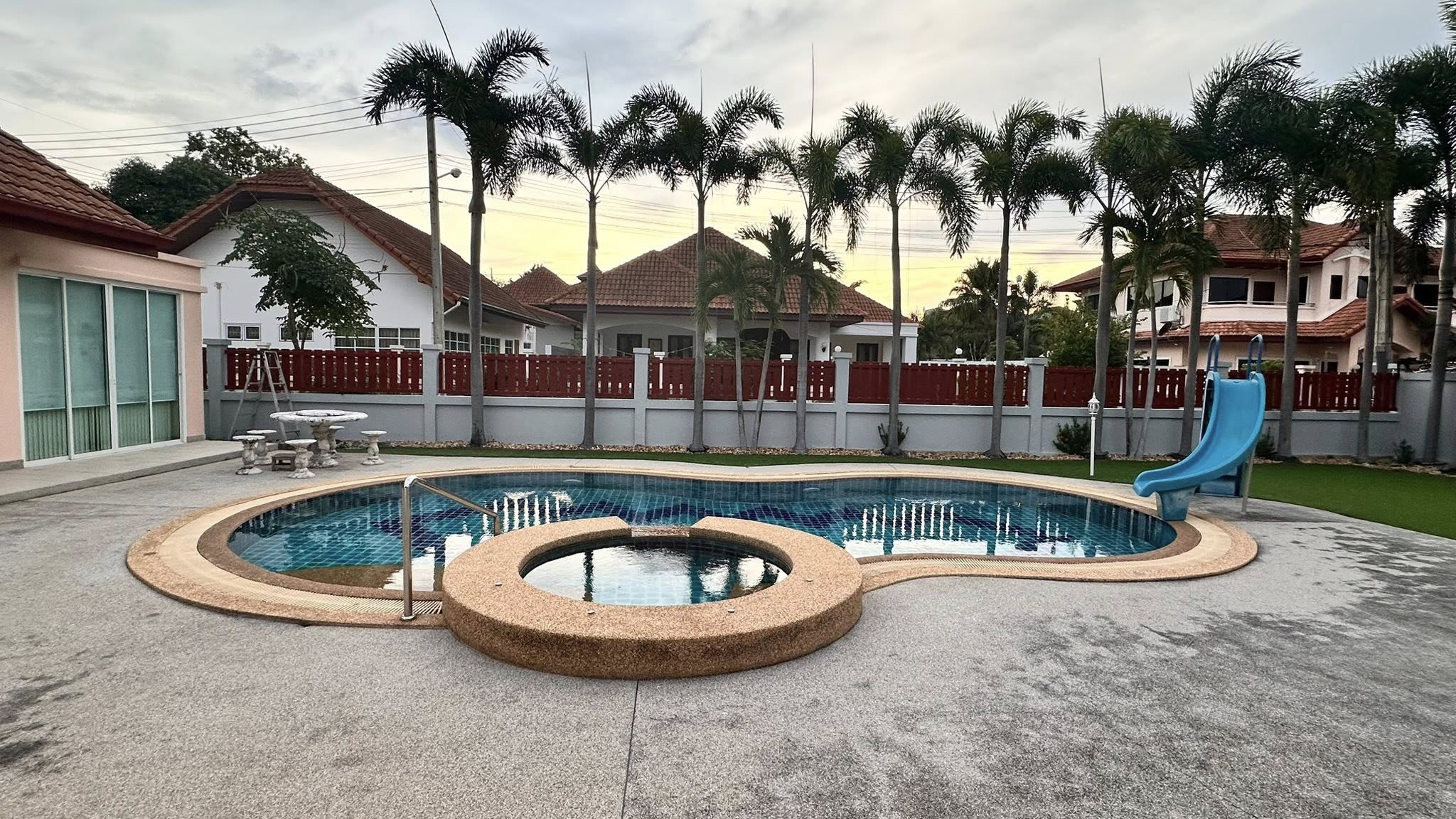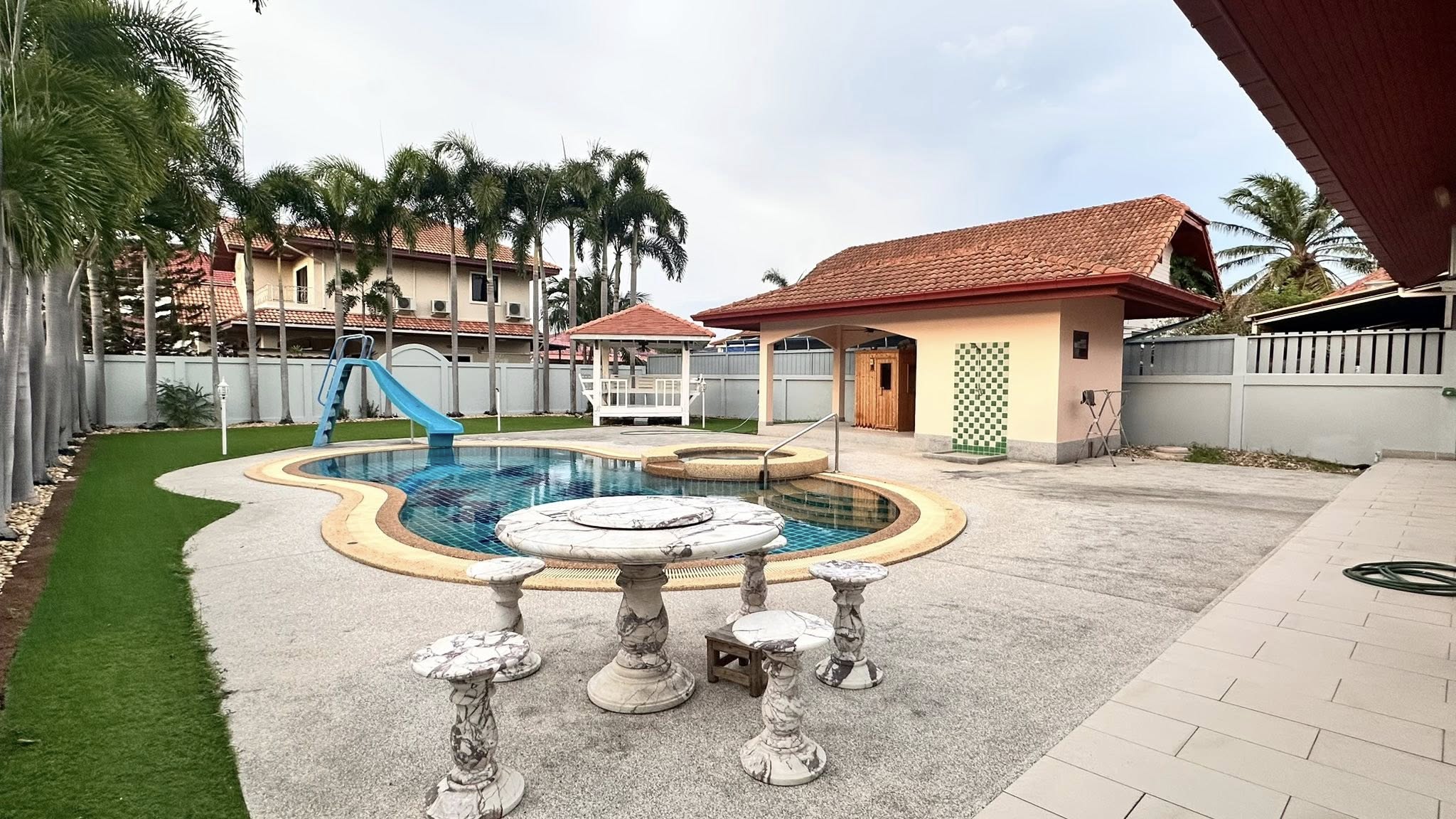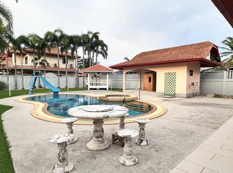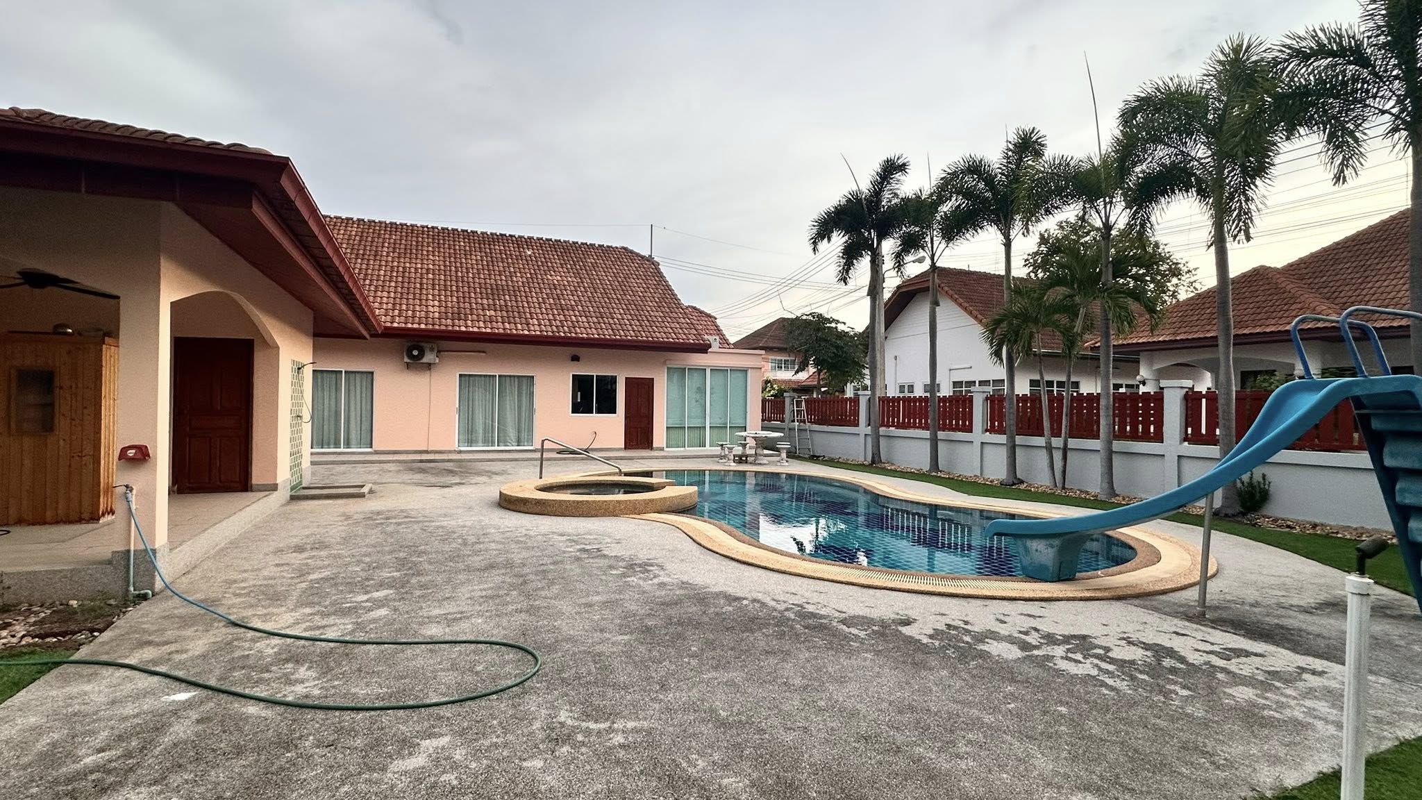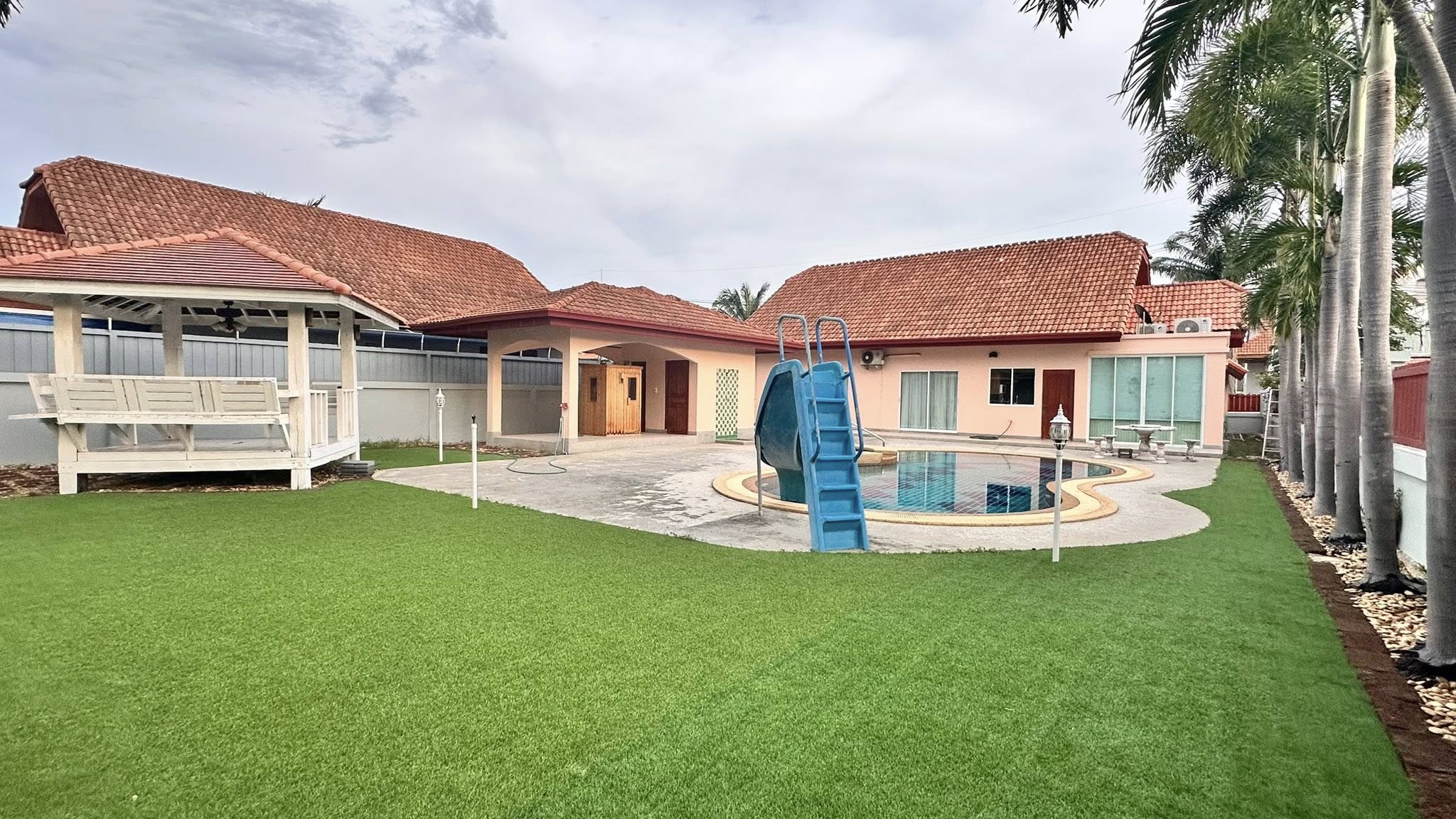 It’s a 3 Bedroom 3 Bathroom with private swimming pool big land size 696sqm the house is in Thai name.