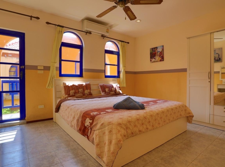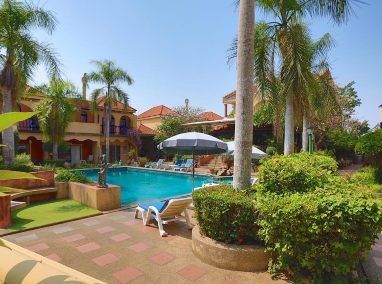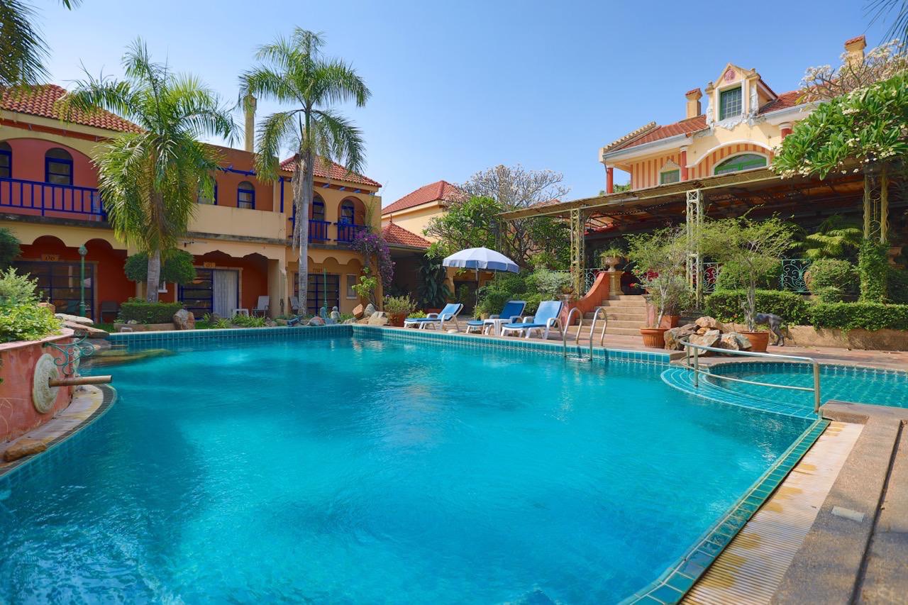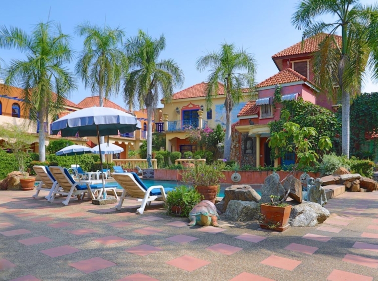 72 Bedroom Tuscany Style Resort for sale at THB 94,000,000 Land Size : 4 Rai / 6400 square meters Built up area : approx. 5500 square meters This resort offers a warm and well-loved decorating style that weaves elegant craftsmanship into a rustic, nature-inspired foundation. A real oasis in East Pattaya ! – 46 houses offering living rooms, kitchen, bedrooms and bathrooms on 2 storeys – 22 one bedroom houses and 24 two bedroom houses measuring 95 sqm to 100 sqm – large resort swimming pool for the guests – “owners villa” with 3 bedrooms and private pool – professional restaurant with kitchen, bar and all the needed infrastructure – professional bakery – 4 staff apartments with bathroom and kitchen – 2 parking areas, offering parking for 35 cars and 50 motorbikes – own water supply – automatic sprinkler for the nature tropical gardens – solid built on pilings with thick insulation blocks – built and designed by its artist owner in 2010